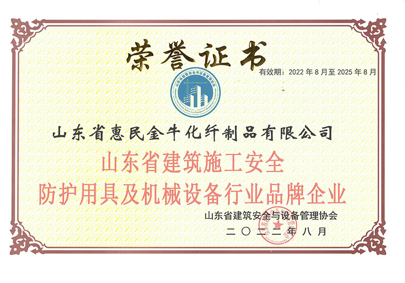 山東省惠民金牛化纖制品有限公司成立于一九九九年,座落于物華天寶、人杰地靈的魯北平原、孫子故里(位于濟南至濱州220國道中段)。濟東高速惠民姜樓出口。       姜樓鎮生產繩網已有三百年的歷史,被譽為“繩網之都”。本公司交通便利,經濟發展迅速,繩、網、安全帶、安全帽及化纖制品規格齊全,公司連續10年被國家指定為特種勞動防護用品定點生產企業。用戶滿意勞動防護用品生產企業。       公司生產流程:從抽絲,捻線,制繩,織網,織帶,注塑,成品。       公司現有職工125人,總占地6000平方米,其中廠房占地面積5000平方米,擁有固定資產2000多萬元。密目網10臺套,捻線機3臺,大型噴絲機3臺,織帶機13臺,全自動大型縫紉機15臺,合繩機5臺。大型注塑機2臺,有節單鉤織網機4臺,大型染色機1臺。主要生產安全網、密目式安全立網、安全帶、安全帽、高強絲及各種防護網、丙綸線、施工線、安全繩、汽車網、火車、異形網等。產品遠銷全國各省、市、自治區,公司產品自投放市場以來深受各級主管部門及建筑施工單位的好評。       公司經營宗旨:“,用戶至上;以質量求生存,...